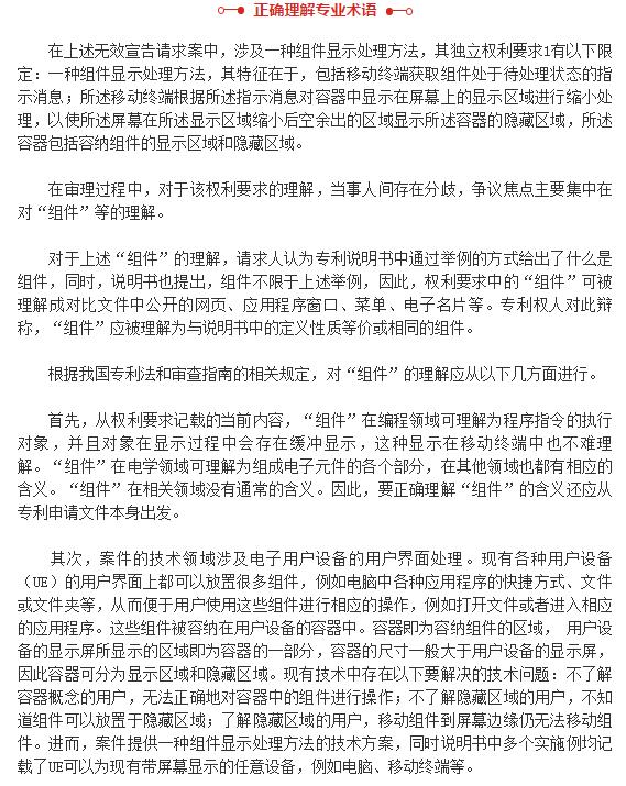 【案例】“一种可应用于终端组件显示的处理方法和用户设备”发明专利无效案